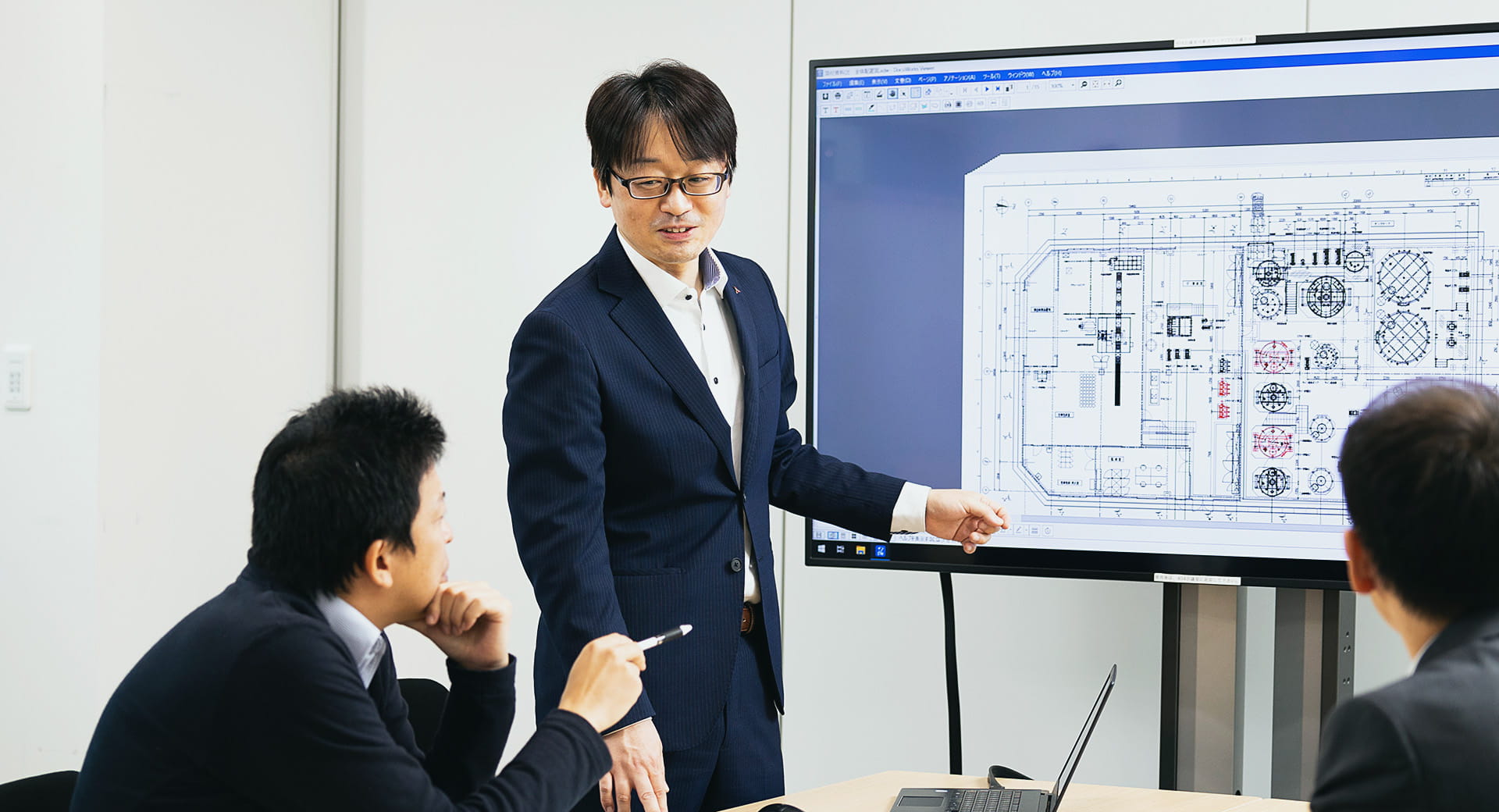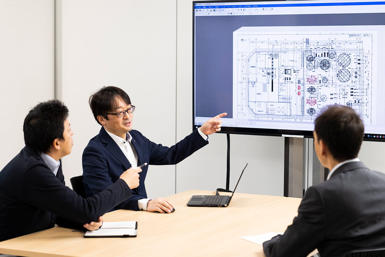 管理職という立場となった今は、インキや薬品、原子力など、幅広い分野の案件をとりまとめています。いろんな分野の案件をいくつも掛け持つことは大変ですが、その分、新しい知識が増える恵まれた環境と言えます。設計図はメンバーに作成してもらうことが増えました。彼らの設計図が実際に形になり、その建物の完成写真を見せると、みんなとても喜んでくれる。今は、自分でやり遂げるよりも、メンバーが喜ぶ姿を見る方が嬉しいです。若いメンバーには、もっと自分の意見を臆することなく発信してほしいです。心に留めていた意見が、ものすごいアイデアに化けるかもしれないし、ミスを防げる種になるかもしれない。MMTECは分野や年齢を越えて発言しやすい雰囲気があります。たくさんぶつかってきてください。僕らがしっかり受け止めますから。