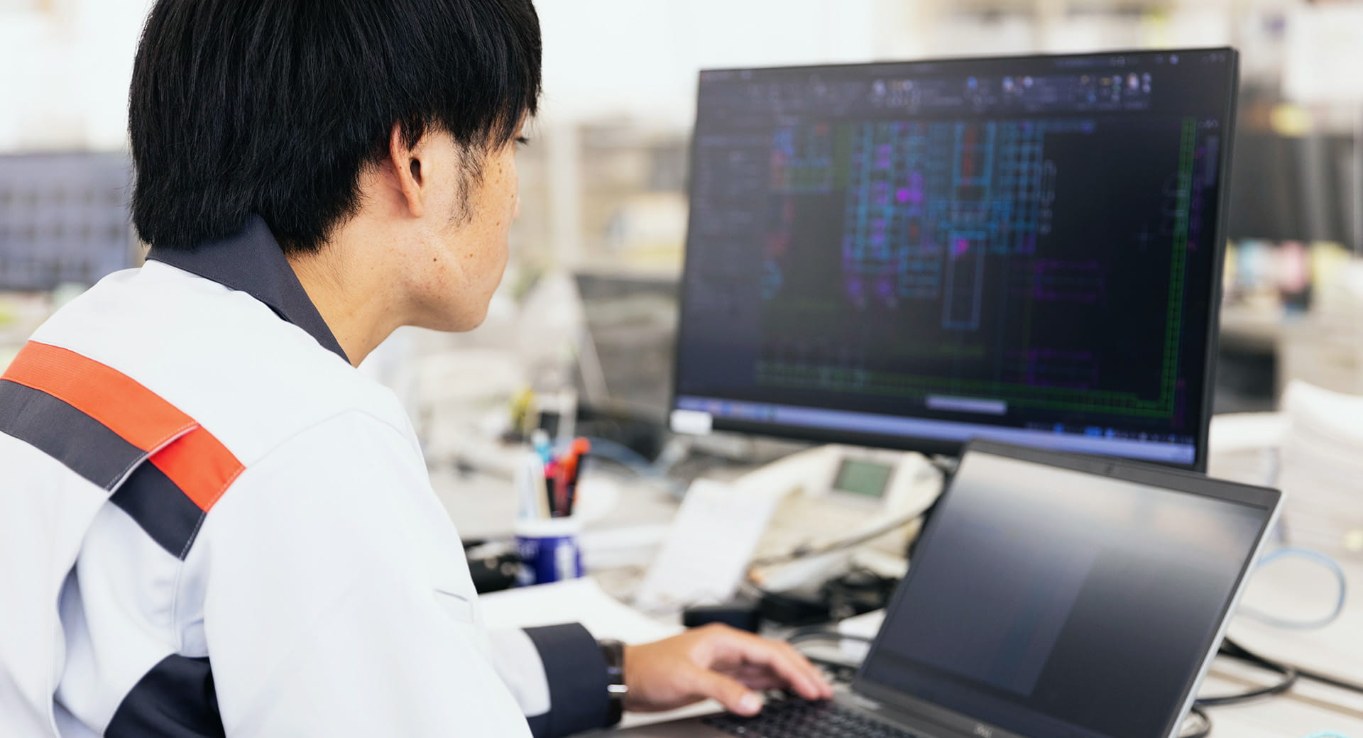 直島事業所に本配属され、初めて一担当者として現場を担う。安全管理を始めとし、作業手順の確認、工程管理を含めた施工管理を行う。小規模な工事の設計、積算も担当する。