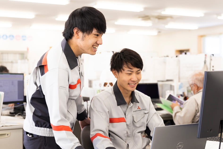 MMTECのホームページを見た時、「挑戦という言葉を大切にする会社だな」と惹かれました。学生時代はあまり挑戦をする機会がなく、社会人になったら仕事の中で挑戦したいと思っていたのです。もともと名前を知らない人はいない「三菱」がつく会社に行きたかったのですが、中でも特に魅力を感じました。入社1年目の現場OJT教育では、四日市事業所(※1)に半年間行きました。そこで40代半ばの先輩が何も分からない僕に付きっきりで仕事を教えてくれて、休日に買い物や観光にも連れて行ってくれました。その先輩のお陰で今があります。