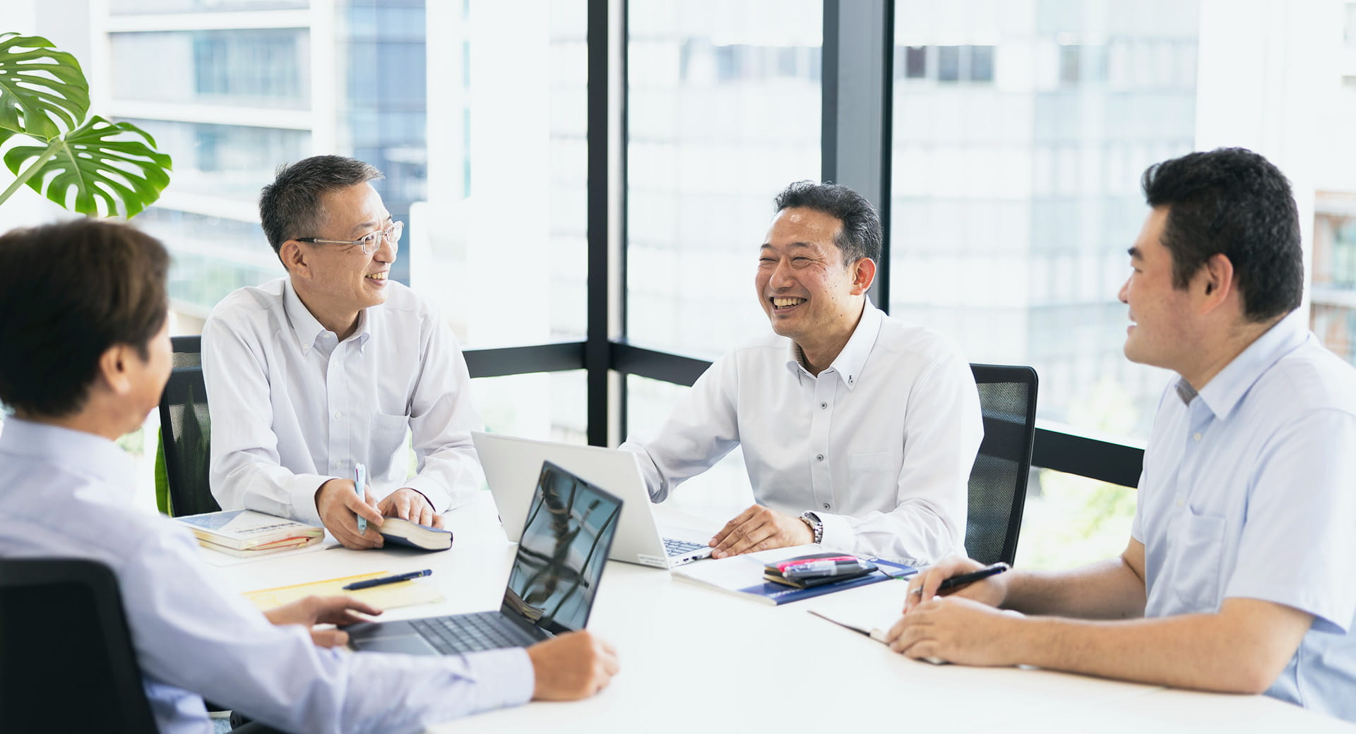 プロジェクトの打ち合わせ。問題や課題があれば、課題の整理や、解決策の考案を行います。