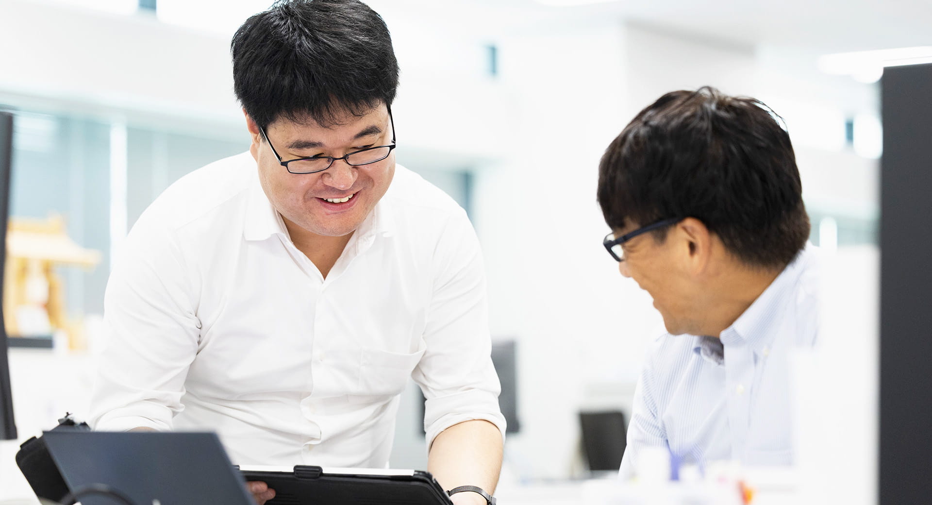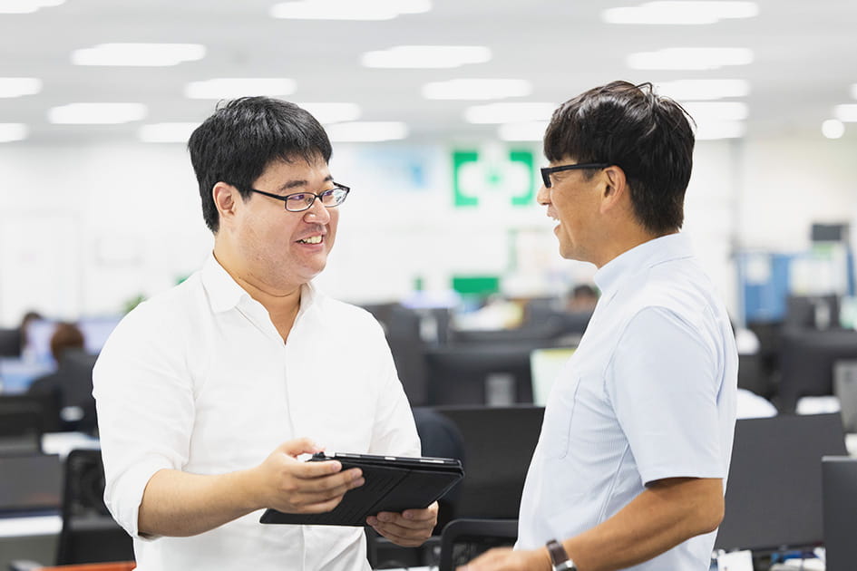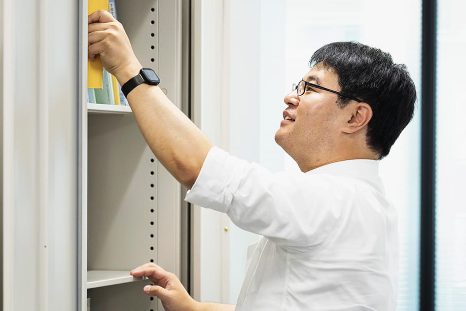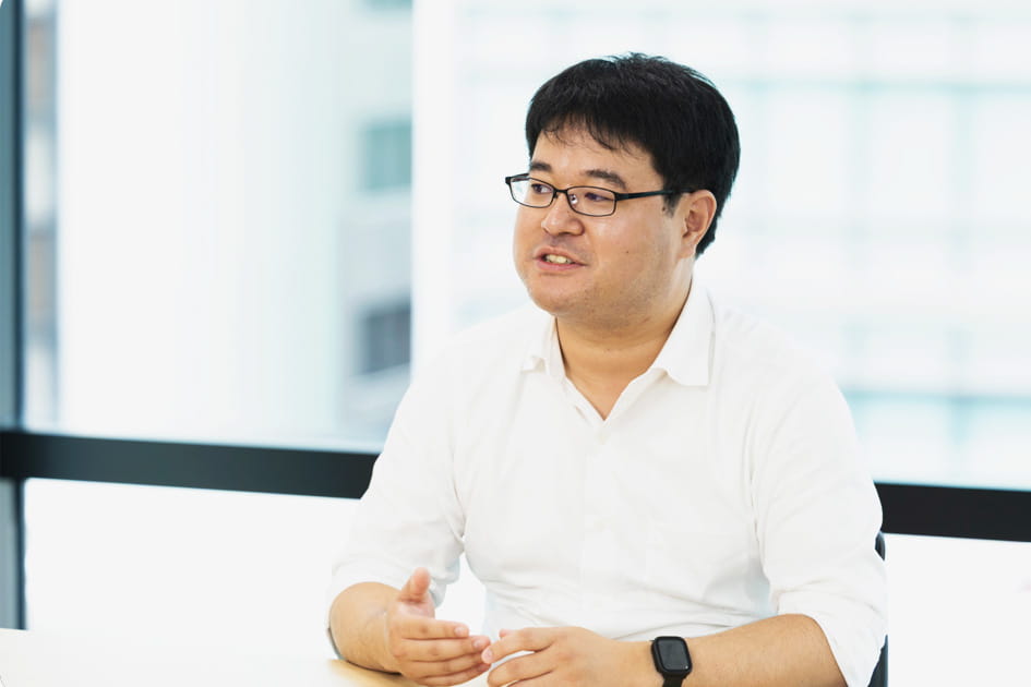 新卒採用。本社での研修後、OJTの先輩とともにデータの解析やシステムの設計を担う。