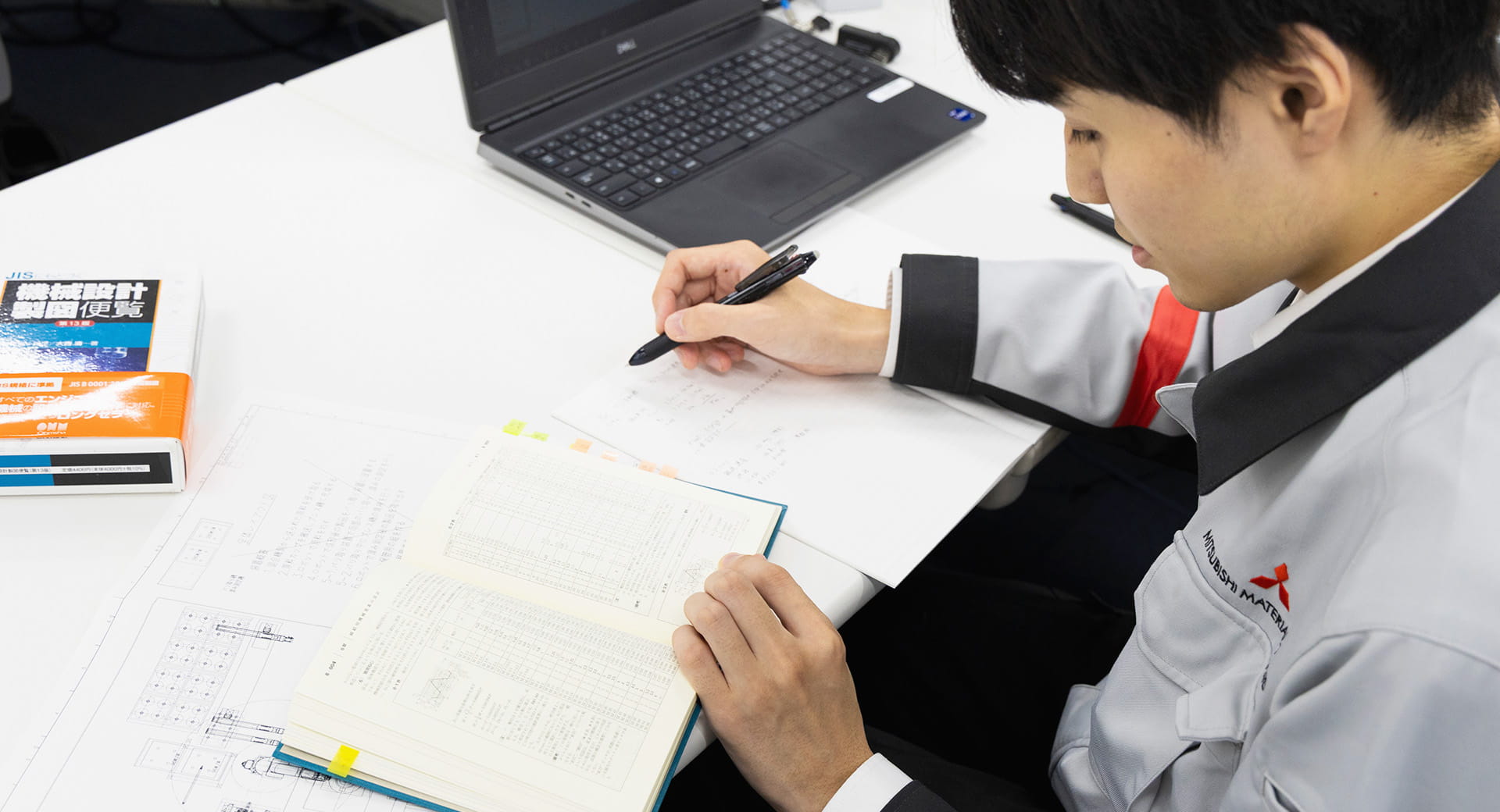 新卒入社。本社研修後、長岡製作所にて現場OJT教育を受ける。装置の部品図面設計や、予備品の見積及び手配をOJTの先輩の補助として担当する。装置設計の基礎知識や技術を学ぶ。