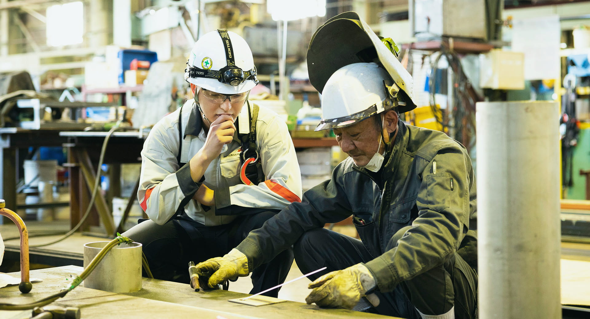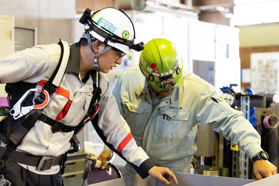 現在は、秋田事業所(※1)にて、お客様のプラントのメンテナンス業務を担当しています。最近は「あれやった?これやった?」と先輩から確認の質問をされる回数が減りましたし、「こうしたいと思うのですが、どうですか?」と意見をすると「いいべ」と秋田弁で賛成が返ってくる回数も増えてきました。半年前の自分よりは成長できていると感じます。周りの職人さんは温かく頼りになる方ばかりですが、「若手の自分がベテランに意見するなんて」と萎縮せず、言うべきことを言えるようになったことも成長です。みなさんの健康・安全を守ることも大事な責務ですから。