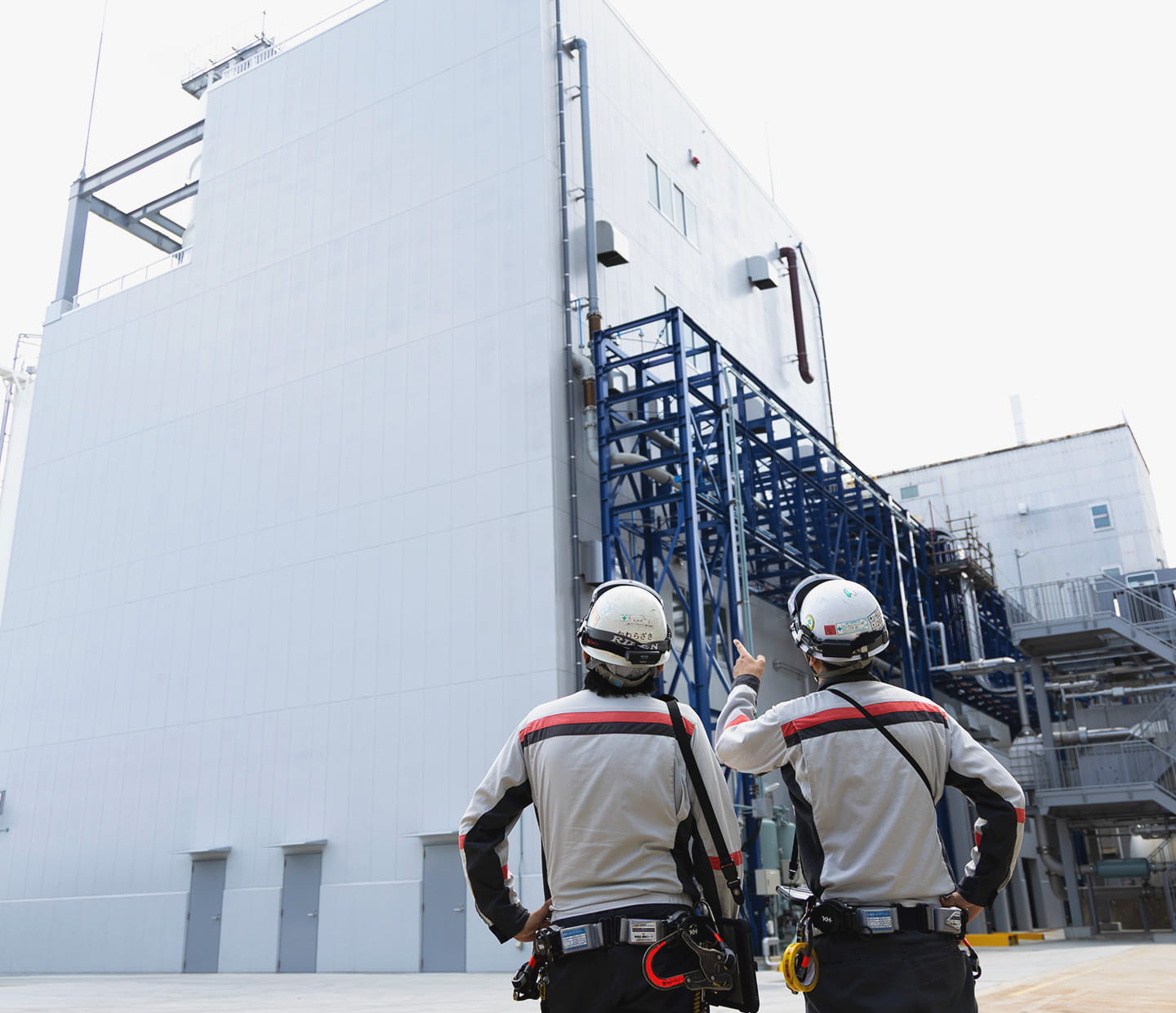 電気自動車の普及拡大に伴い、リチウムイオンバッテリーの材料として需要が高まる「酸化アルミニウムの微粉末」を製造する新プラントの建設プロジェクト。プラントのプロセス設計から、装置の設計・製造、現場では土木工事、建設工事、装置の据え付け、試運転までを一気通貫で対応した。建設現場の土壌調査を実施したのが他案件と異なるポイント。2022年に計画開始、2023年着工、2025年竣工。難易度の高い特殊材料の調達や海外企業との調整も乗り越えた、当社史上最大級の化学プラント建設案件である。